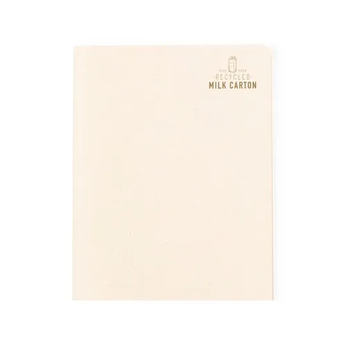 Carnet fabriqué à partir de cartons de lait recyclés. Avec couvetures rigides, de finition cousue et 60 feuilles intérieures blanches à une ligne. Logo Recycled Milk Carton sur le devant et sur les feuilles intérieures. Présenté dans un sac individuel recyclé.Les cartons de lait sont principalement constitués de carton et d’aluminium. Au cours de leur processus de recyclage, les différents matériaux de l’emballage sont séparés pour réutilisation et nouvelle utilisation, contribuant ainsi à parcourir le chemin infini de l’économie circulaire. Ce matériau se caractérise par son haut degré de recyclabilité, ainsi que par sa légèreté et sa résistance. 60 Feuilles