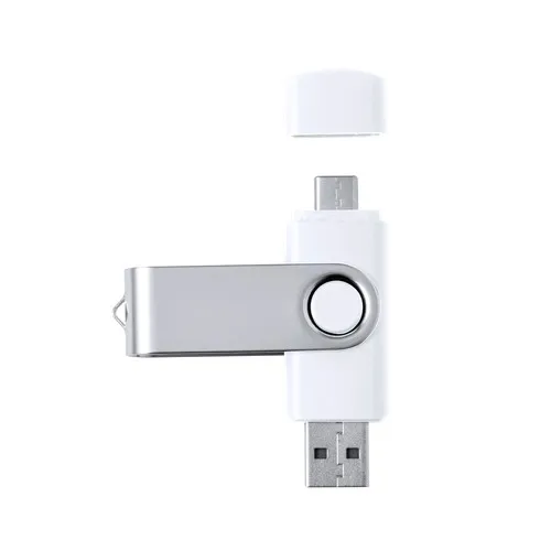 Clé USB 3.0 de 16 Go de capacité. Avec clip métallique et corps de finition blanc doux. Connexions USB et Type C. Présenté dans un étui individuel.