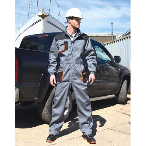 80% polyester / 20% coton sergé. Col montant et fermeture zippée à l’avant avec rabat de protection extérieur fermé par bande auto-agrippante. Taille élastiquée. Poignets élastiqués. Système de poches Cargo multi-usage avec languettes réfléchissantes à bande auto-agrippante. Coutures renforcées sur les points de contrainte. Anneau en D. Patte de suspension cousue dans le col. Propriétés de résistance à l’eau effectives jusqu’à 12 lavages (étiquette de contrôle à découper à l’intérieur du vêtement).