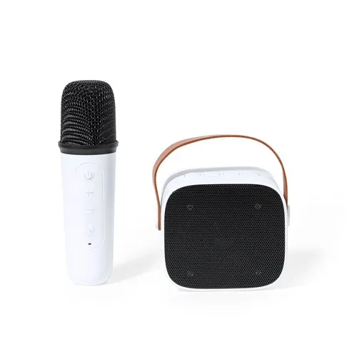 Pack karaoké original avec haut-parleur et microphone.Sa taille compacte et la facilité de connexion Bluetooth® en font un accessoire idéal pour en profiter n’importe où et n’importe quand.le pack contient :Haut-parleur avec poignée de transport pratique en PU. 5W de puissance et batterie longue durée de 1200 mAh.Microphone ergonomique assorti pour profiter des meilleures chansons.Présenté dans une boîte design Kraft. Manuel d’instructions disponible en espagnol et en anglais. Connexion Bluetooth. Puissance Sonore 5W. Batterie 1200 mAh. Microphone Incluse