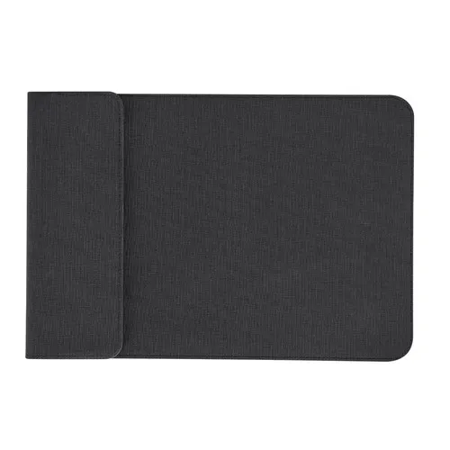 Housse dordinateur portable multifonction en PU Recyclé et tissu RPET. Convient aux ordinateurs jusquà 13 pouces et équipée dun système de charge sans fil multifonction. Comprend 2 chargeurs : chargeur sans fil magnétique pour montre connectée, situé en haut, et chargeur sans fil magnétique pour mobile et/ou écouteurs en bas. Avec système de fermeture magnétique.