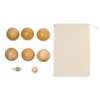 Jeu de pétanque en bois. D’inspiration artisanale, il comprend 6 boules, un bowling et une corde de mesure. Présenté dans une housse de transport pratique en coton de finition naturelle et avec fermeture à cordon. 8 Pièces. Étui Coton