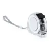 Mètre de 5 mètres avec lame métallique et mécanisme de verrouillage. Avec corps en finition transparente originale, clip métallique pour ceinture et sangle de transport, avec zone spéciale de marquage. Présenté individuellement en boîte de design kraft. Avec Frein et Clip Incluse