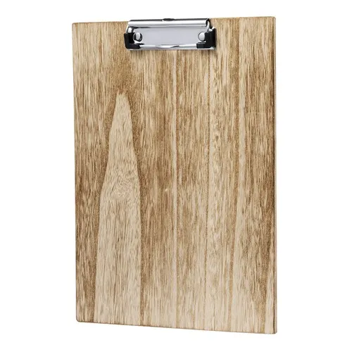 Excellent organisateur en bois doux de taille A4. Avec une pince de documentation robuste et présenté individuellement dans un boîtier design kraft.