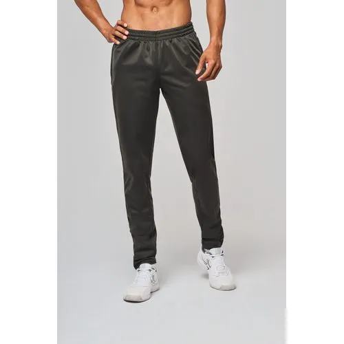 100% polyester tricot. Empiècement dos en mesh pour une meilleure ventilation. 2 poches côtés zippées. Ceinture élastiquée avec cordon de serrage. Bas de jambe zippé. Coupe ajustée moderne.