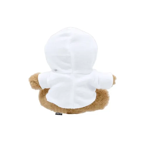 Douce peluche ours fabriquée en RPET avec sweat-shirt personnalisable, idéal pour la sublimation.Le matériau RPET est fabriqué à partir de plastique recyclé, pour ainsi favoriser la réutilisation des déchets plastiques et aider à la durabilité de la planète.