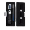 Réfractomètre manuel portable, spécialement conçu pour le contrôle des degrés Brix. Il fonctionne en versant une goutte dans le compartiment désigné, puis en abaissant le couvercle transparent et en regardant à travers le viseur, tout en ajustant le bouton. Portable et présenté dans un étui de transport robuste avec fermeture de sécurité et accessoires intérieurs. Avec des instructions en espagnol et en anglais. Présenté dans une boîte de conception kraft.Contenu: – Compteur – Étui de transport avec intérieur en mousse – Pipette – Tournevis – Chiffon nettoyant