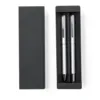 Set de stylo et roller en aluminium recyclé. Stylo à capuche à mécanisme rotatif et roller, tous deux équipés d’un clip métallique. Tous deux sont marqués à l’encre bleue et présentent un corps de finition brillant, avec une marque en aluminium recyclé. Présentés dans une boîte individuelle kraft. L’aluminium recyclé est un matériau avec des possibilités de recyclage presque infinies, sans perdre ses propriétés d’origine et consommant moins d’énergie dans ce processus.Certification GRS (Global Recycled Standard / Standard de Recyclage Global), qui garantit l’origine recyclée des matériaux utilisés pour fabriquer le produit.