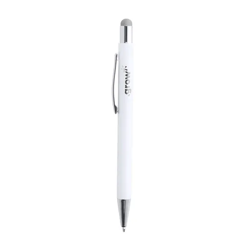 Stylo en aluminium en blanc mat élégant. Stylet dans une gamme variée de couleurs, assorti à la couleur de l´intérieur du stylo pour une gravure laser en accord avec la couleur du stylet. Logo avec effet miroir. Avec cartouche jumbo et encre bleue. 800 mètres d´écriture 1 mm.