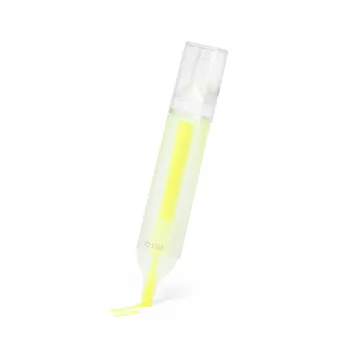 Marqueur fluorescent de la ligne Nature en RPET, fabriqué à partir de plastique recyclé pour promouvoir la réutilisation des déchets plastiques et contribuer à la durabilité de la planète. Avec corps transparent et capuche assortie. Avec badge RPET imprimé sur le marqueur.