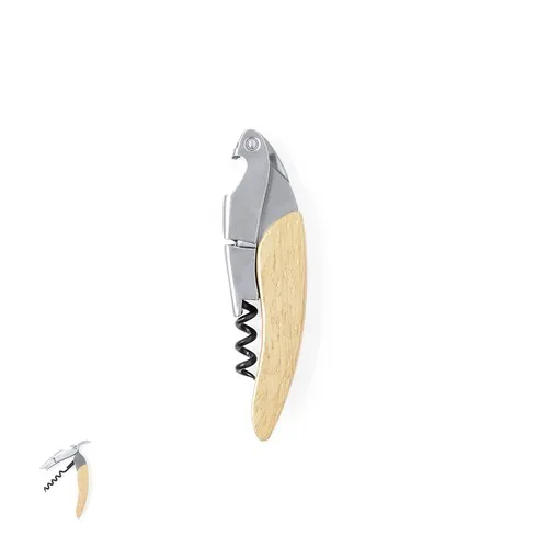 Tige-bouchon en acier inox, avec poignée en bois souple et coupe-capsule intégrée. Présenté dans une boîte individuelle de conception kraft.