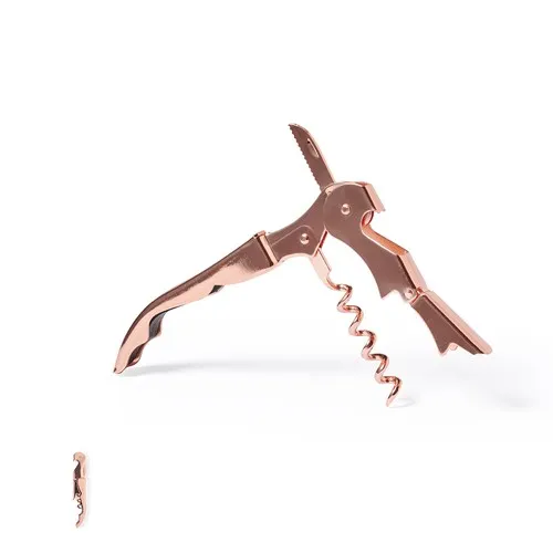 Tire-bouchon 2 temps en acier inoxydable, avec un revêtement extérieur en cuivre galvanisé. Coupe-capsule intégré et présenté dans une boîte design individuelle.