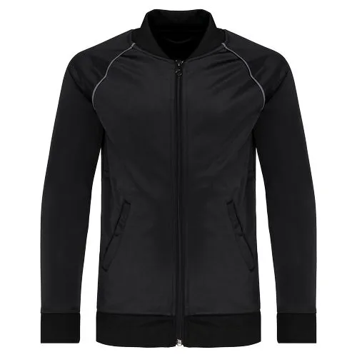 100% polyester tricot. Coupe droite. Fermeture zippée nylon ton sur ton. Manches raglan avec liseré contrasté. Bord-côte 1×1 au col, bas de manches et de vêtement. 2 poches latérales zippées. Etiquette de marque déchirable pour faciliter la personnalisation.