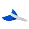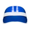 Visière originale en PVC avec protection UV. Finition en couleurs transparentes combinées à des détails blancs, élastique réglable et disponible dans différents coloris.